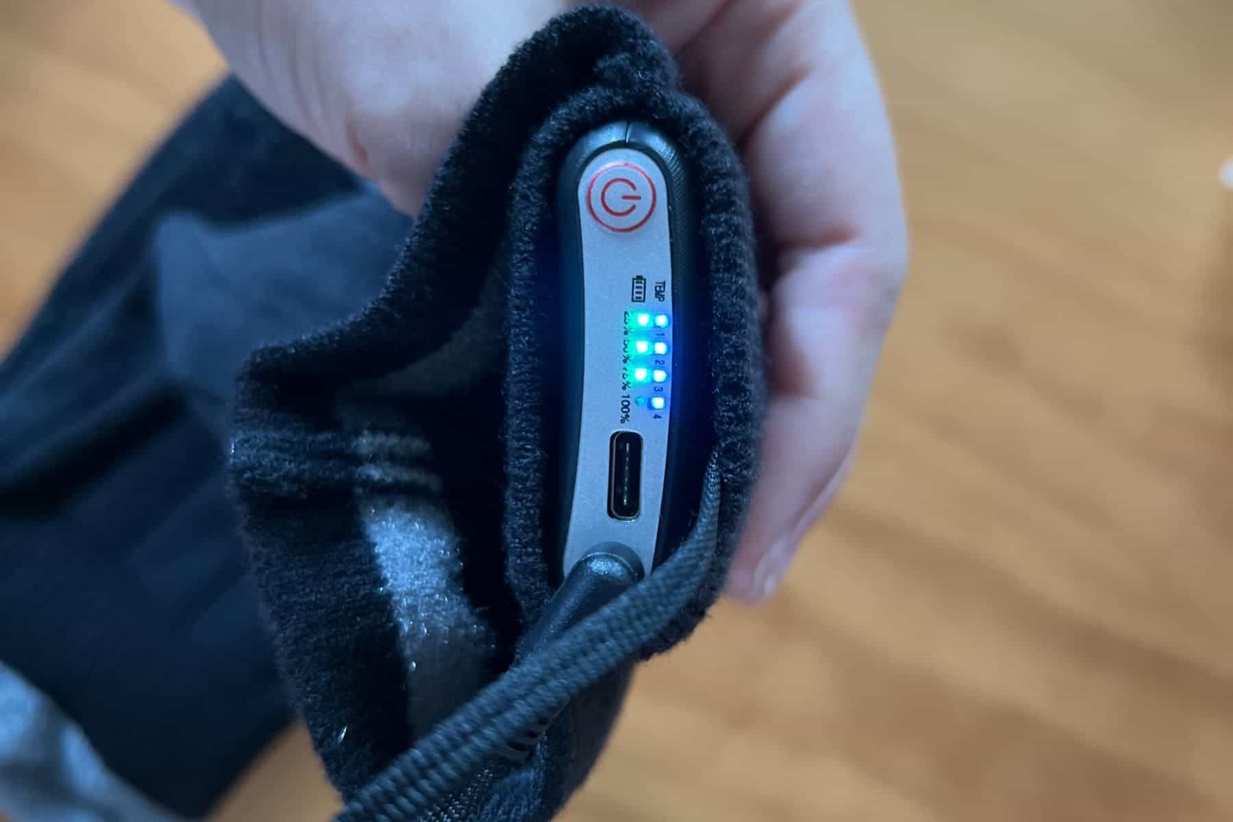 The design also incorporates a windproof outer layer, giving us an extra layer of protection against the elements and ensuring complete warmth in all conditions. The thickness of this material makes it feel more like a quality product. This is something that heated socks don’t generally share with ski socks, for example, so it’s nice.