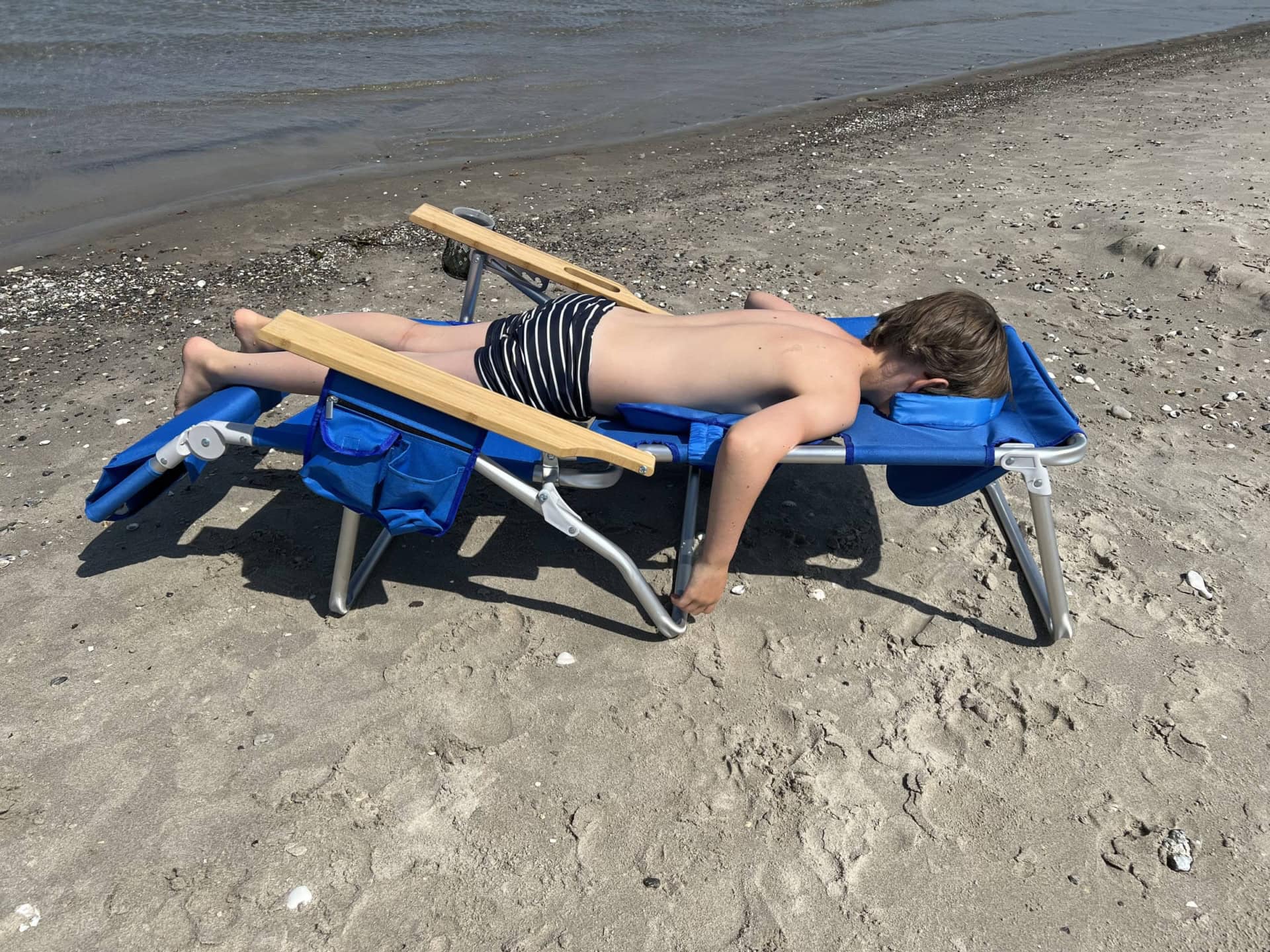 The Ostrich Deluxe 3N1 Beach Chair is packed with a number of features, appealing to the maximalists and the glampers of the world. Equipped with a lumbar support pillow, extra wide armrests, and even a head pillow that converts into a face cushion when lying on your stomach, this beach chair is the closest you can get to dragging your lazy boy recliner out on the sand.