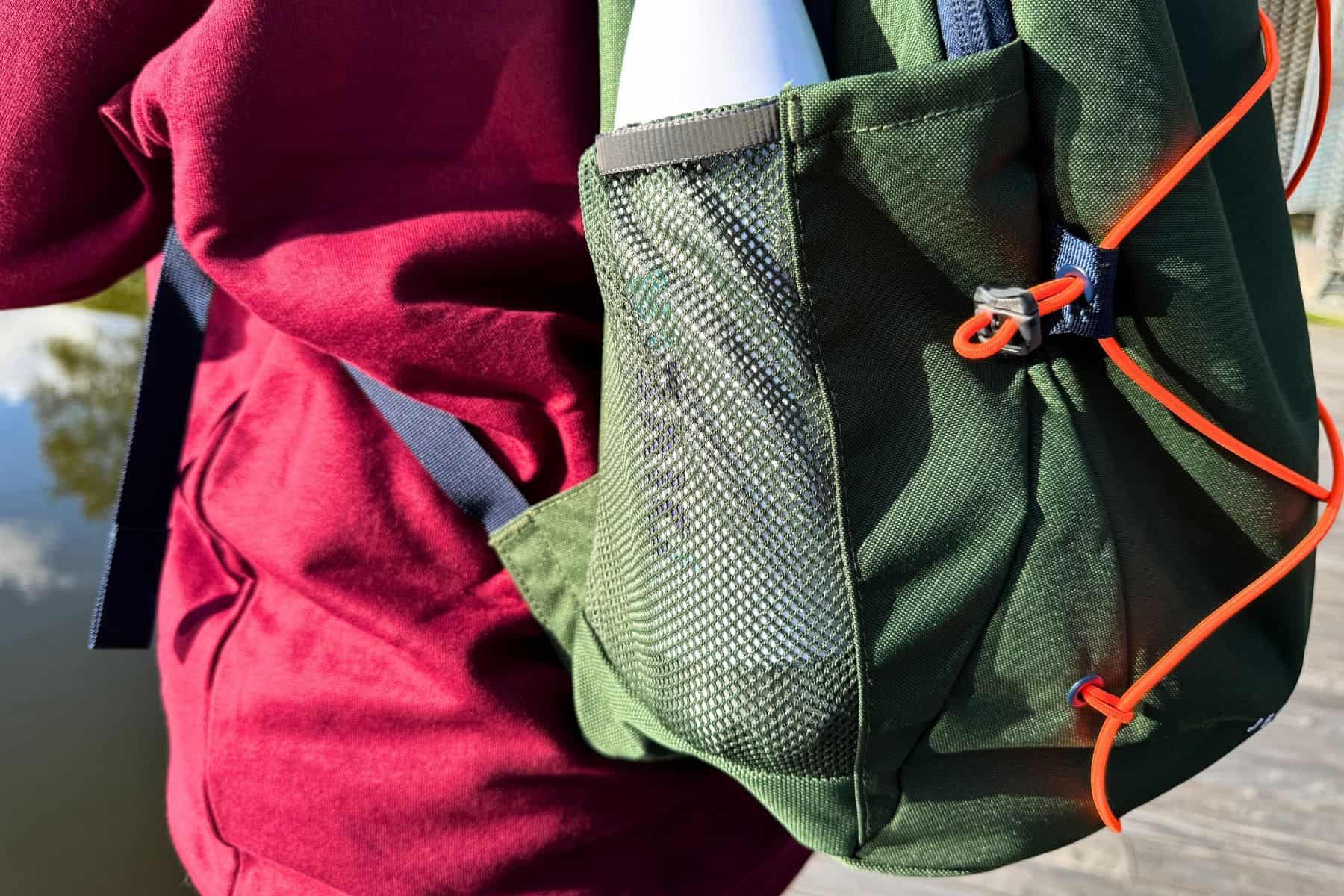 At first glance, we like the bright colors and soft texture of the Jester. We’re testing out the deep green with fluorescent orange compression bungee. The back and shoulder straps are great for carrying heavy loads and the padding is solid.