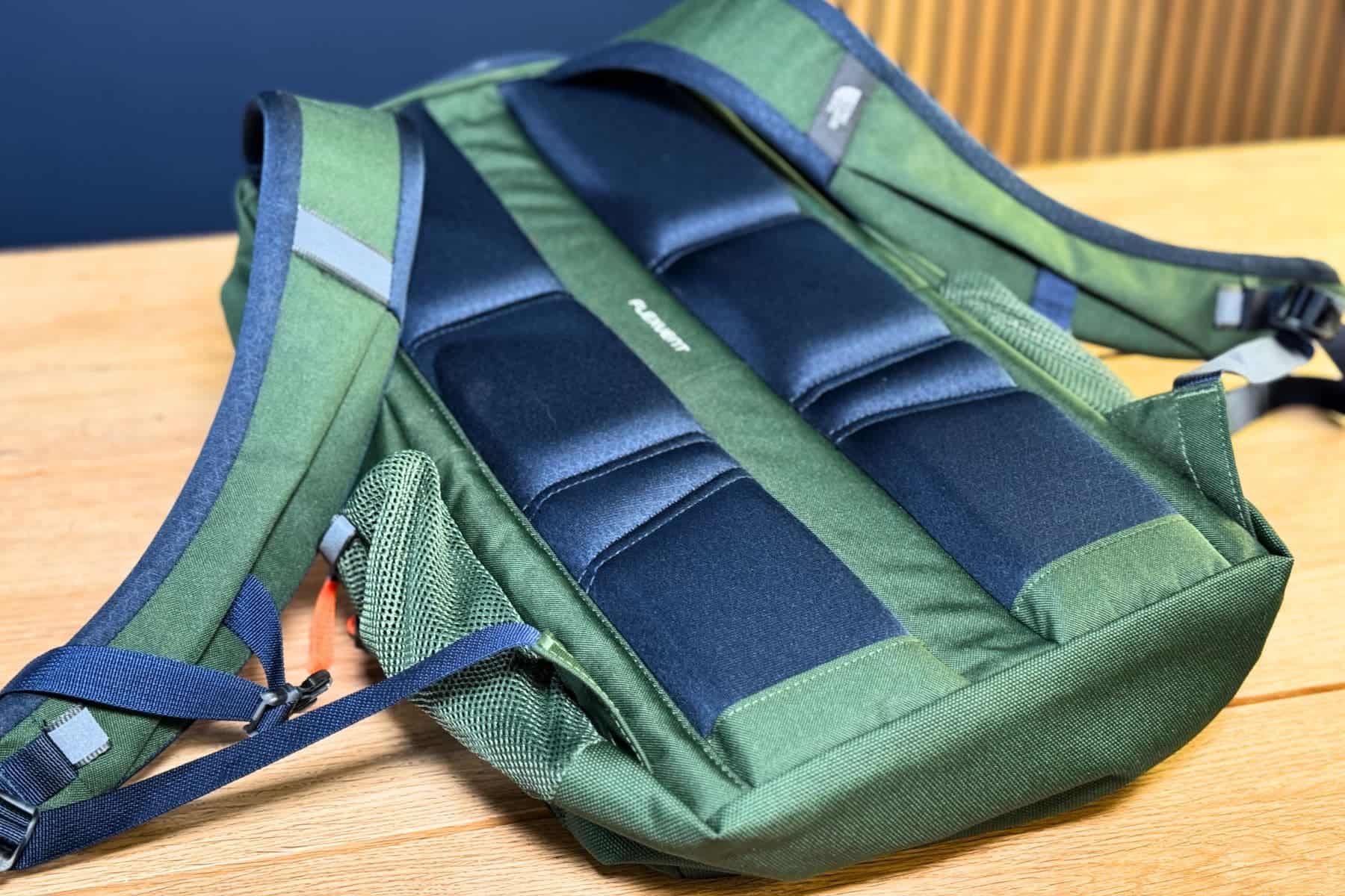 The laptop compartment fits a 15’’ device but it’s lacking a bit of padding on the internal side, unlike the Borealis, which offers padding inside and out. The main compartment is large and fits a pair of shoes and a small towel even with a computer.