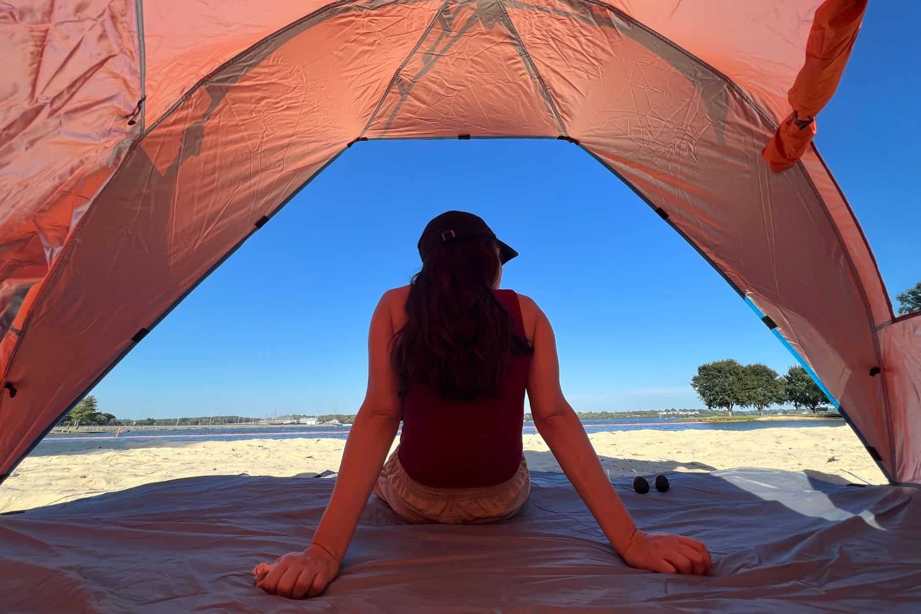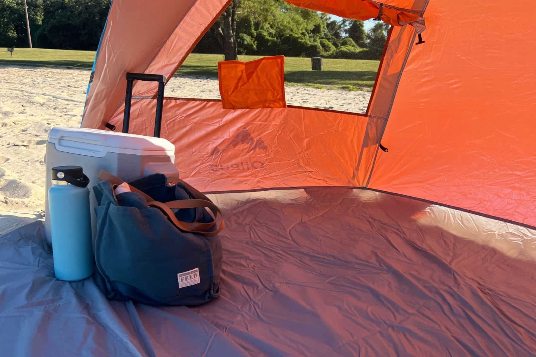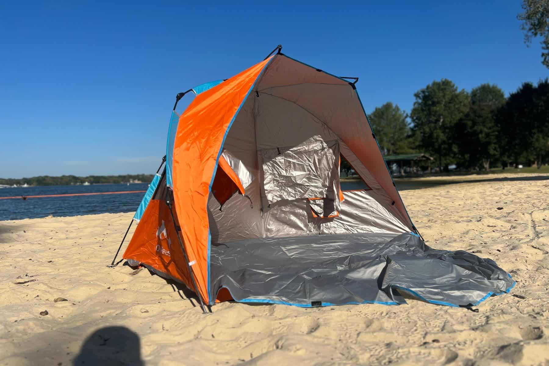 A few things to hold out for, which are further outlined in our buyer’s guide, would be optimal sun protection, good anchoring mechanisms like sandbags and stakes, lightweight portability, and ease of assembly.