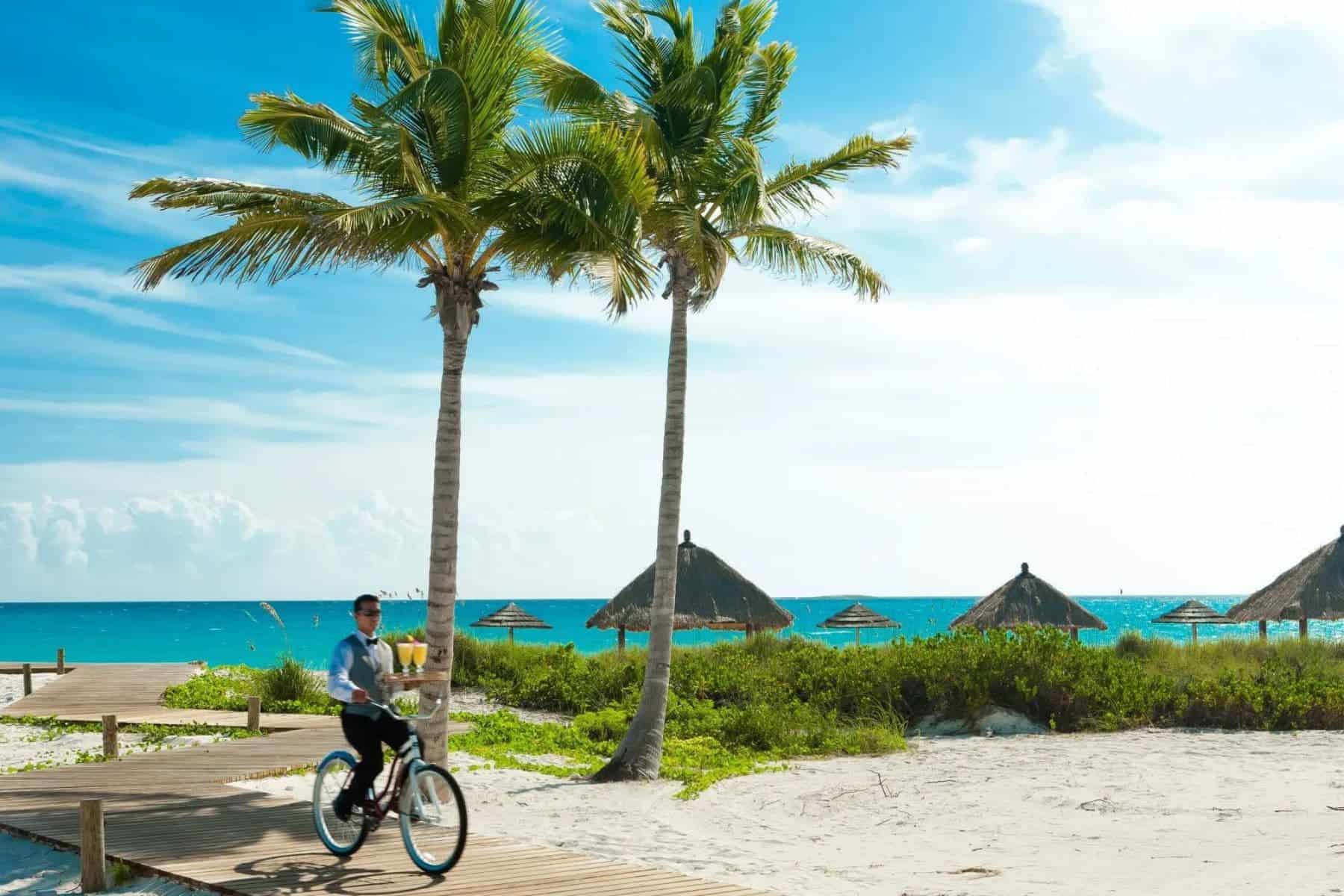 The resort’s spot on Grand Exuma gives it the sparkling waters and white sands that the island chain is known for, while beautifully manicured outdoor spaces include zero-entry swimming pools and tranquil gardens.